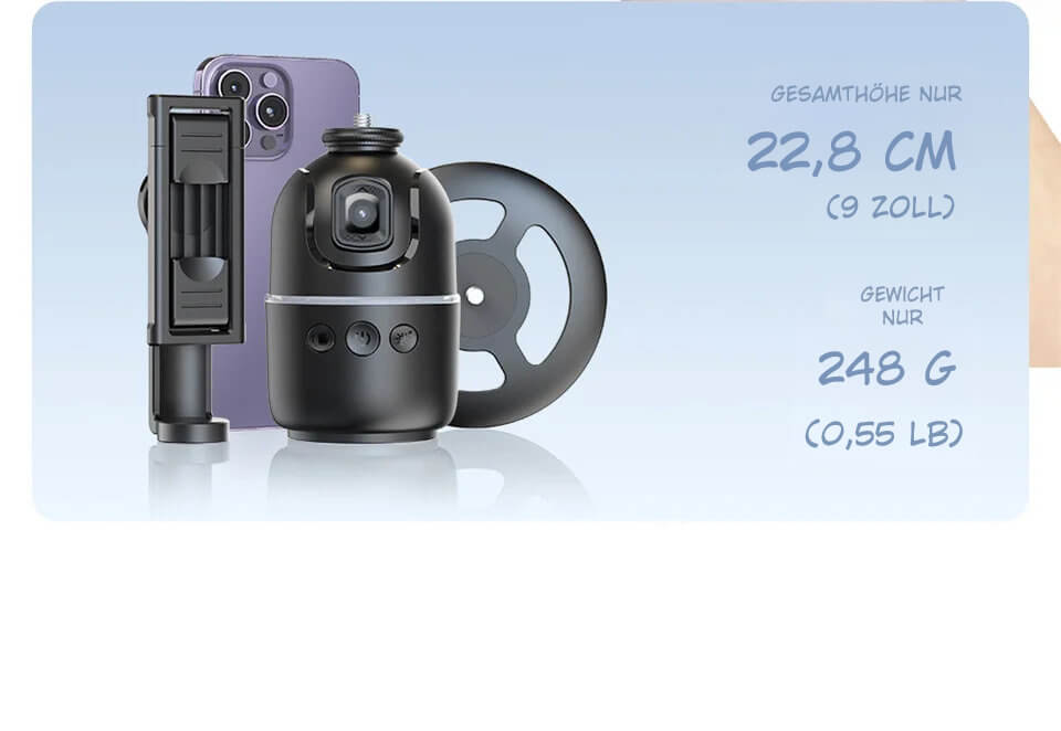 Dank intelligenter Gesichtserkennung und automatischer Verfolgung sorgt er dafür, dass du immer perfekt im Fokus bist – beim Filmen, Vloggen, Livestreamen oder auf Reisen.