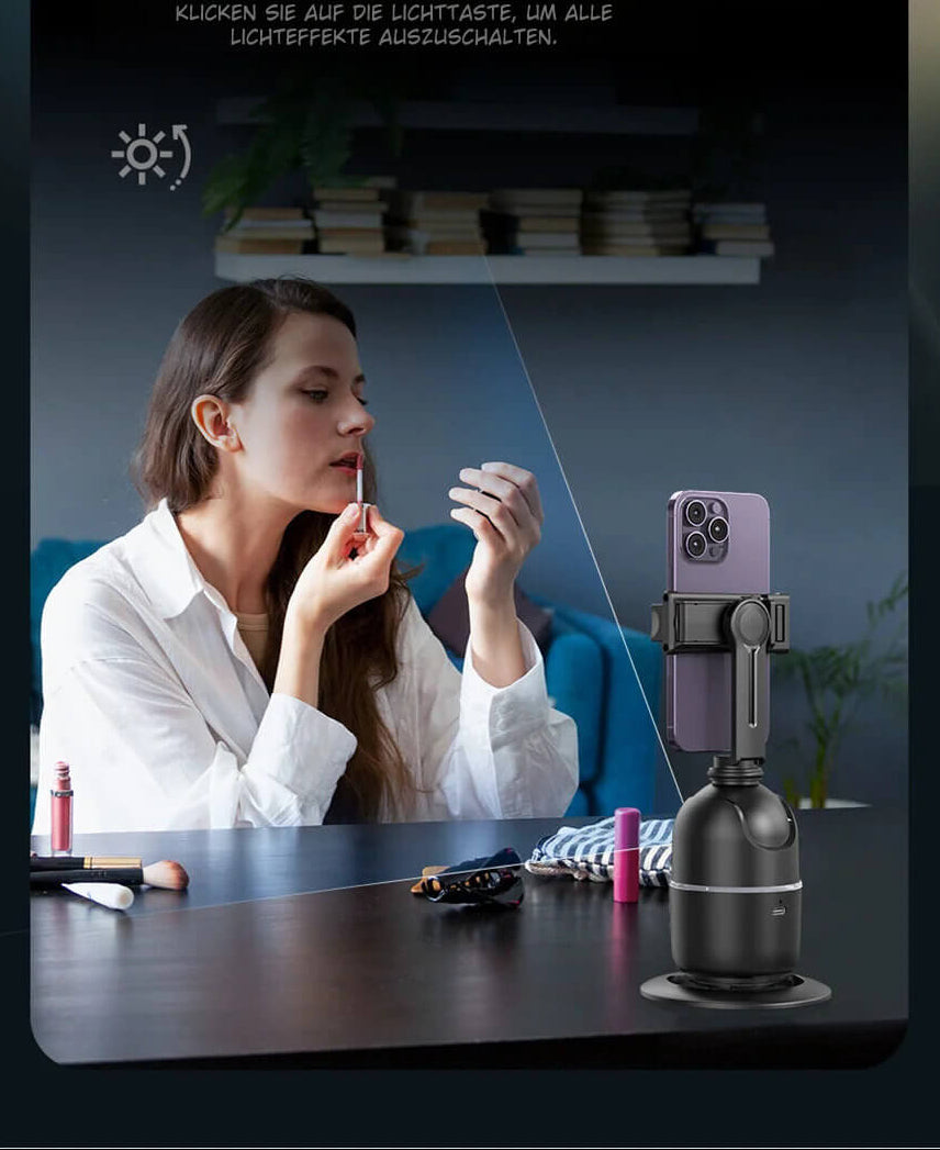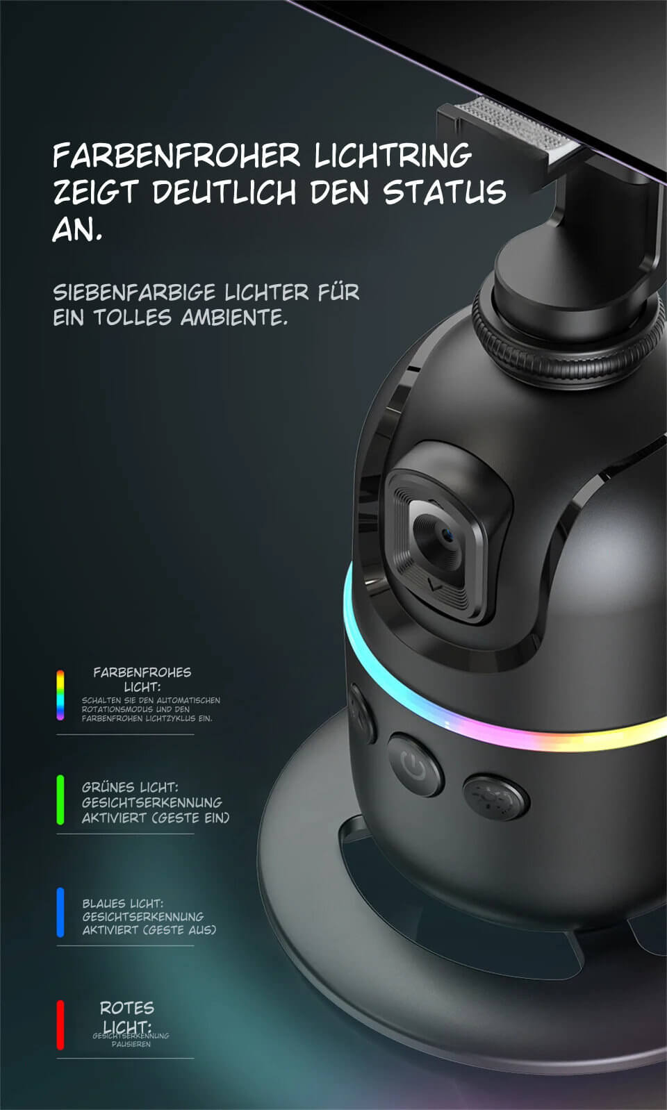 ✅ Automatische Gesichtserkennung – Die integrierte Kamera verfolgt dich in Echtzeit, egal ob du dich bewegst, tanzt oder sprichst.